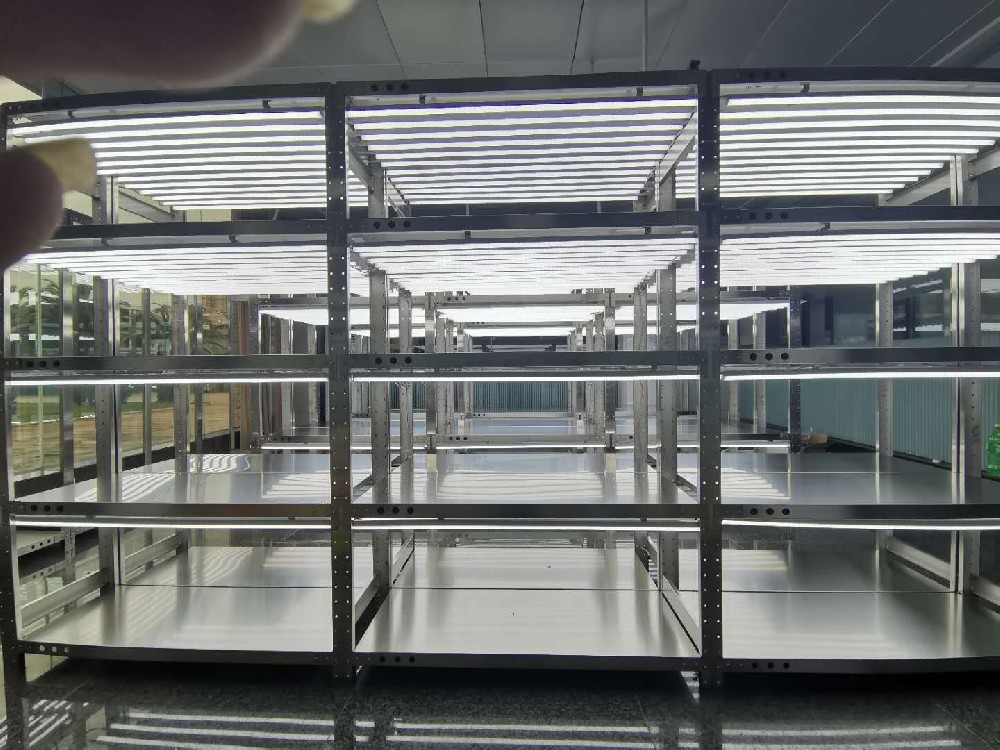 光照培养架由架子、层板、高效三基色LED平面式光照板、光照控制开关组成。可独立控制每屋光照的开与关,架子立柱采用不锈钢,横梁可直接插入,层高可调,每层承载重量大于200KG/屋。